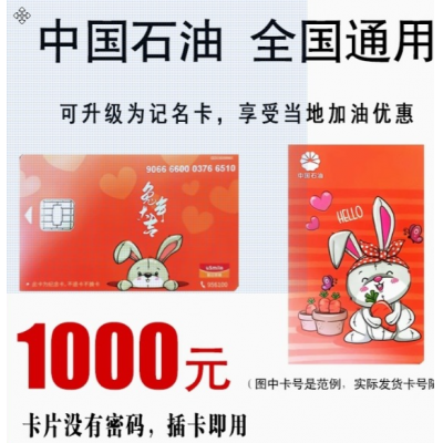 首页 > 加油卡 > 中国石油加油卡 > 中石油加油卡1000 特别礼物油卡 中国石油兔年生肖兔子送礼礼品卡